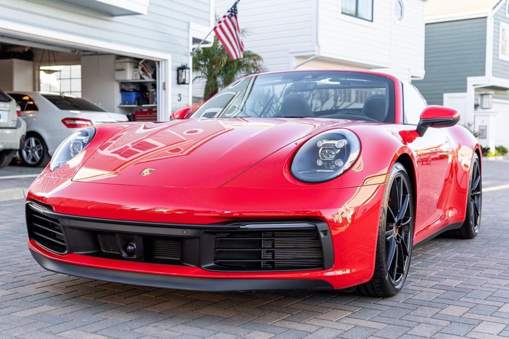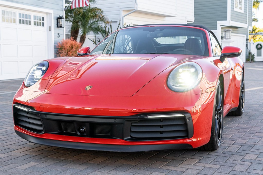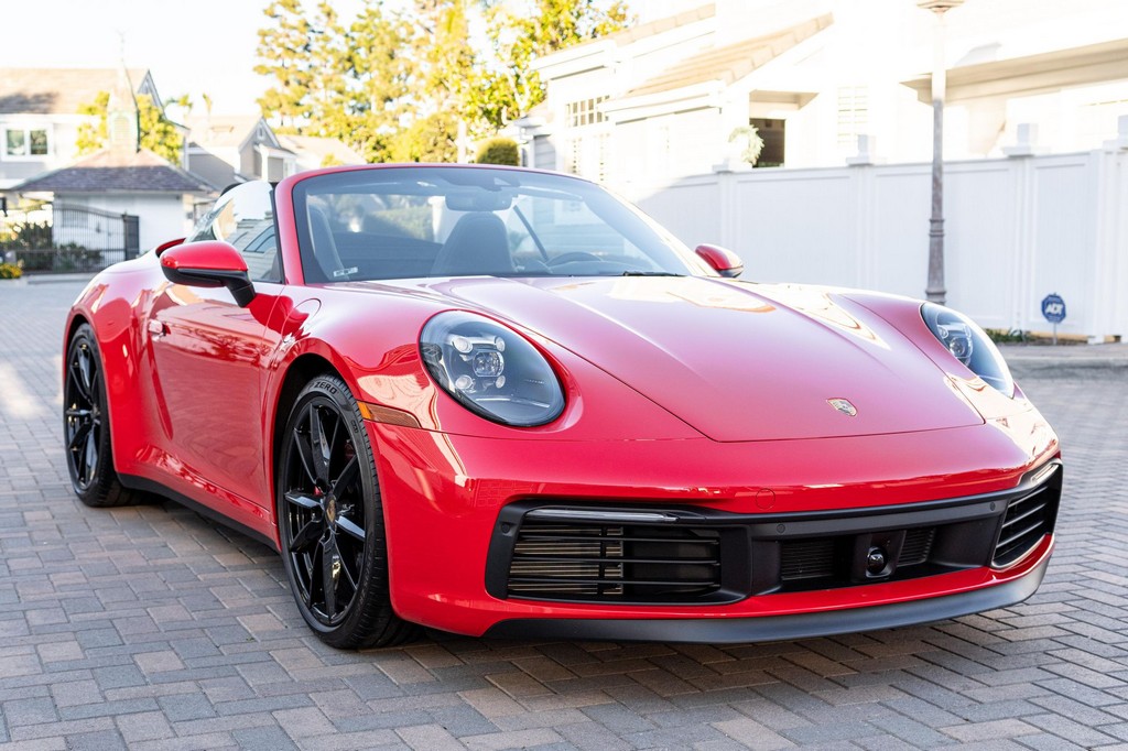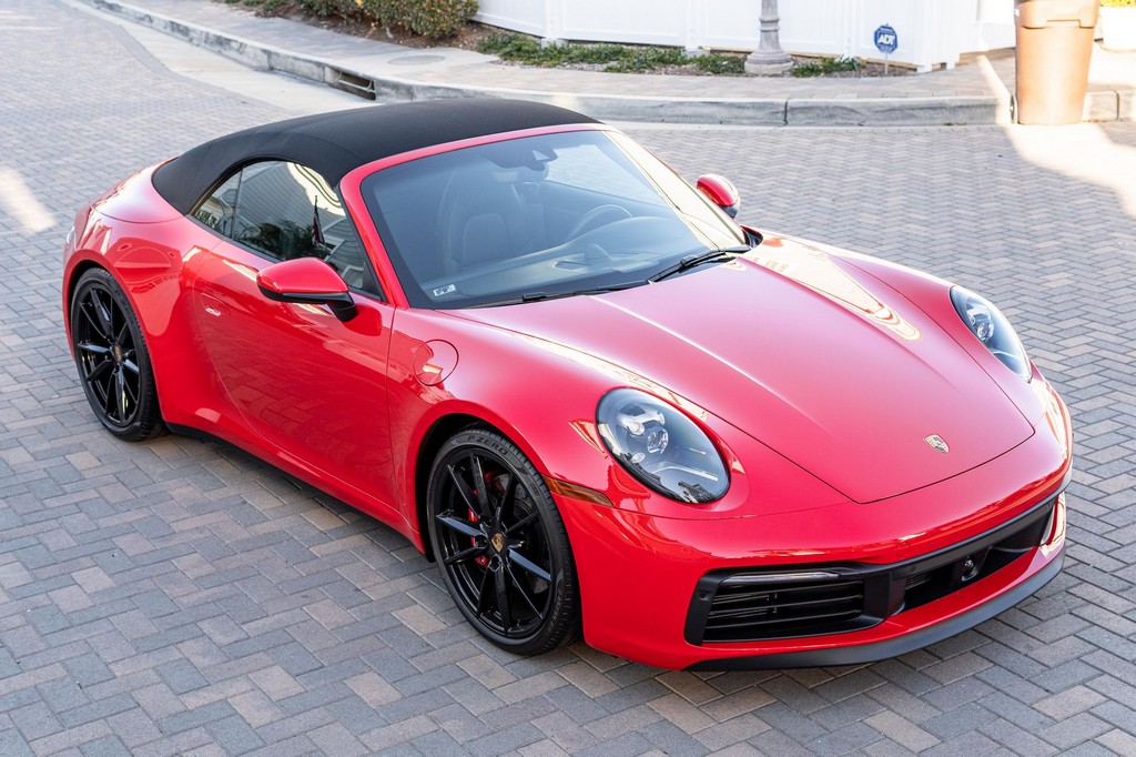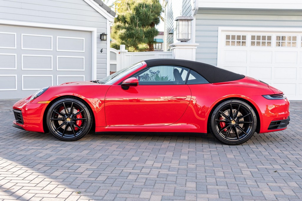 THIS… is a 2021 Porsche 911 Carrera S Cabriolet, finished in Guards Red with a black soft top, and a black interior. The attached Carfax history report lists no accidents or mileage inconsistencies. It also shows that this is a one-owner car that’s been California-owned since new. A partial list of notable equipment includes the Sport Package which features the Sport Chrono Package, a sport exhaust system, and Porsche Active Suspension Management (PASM) sport suspension. Other equipment includes 21-inch alloy wheels, 14-way power seats with memory package, a Bose sound system, Lane Change Assist (LCA), Adaptive Cruise Control (ACC), and more detailed below. Porsche released the “992” generation of the 911 for 2020. Slightly longer and wider than its predecessor, it received evolutionary design updates and much more significant changes under the body, including revised engines and an 8-speed automatic transmission. Power for this 911 comes from a twin-turbocharged 3.0-liter flat-6 engine, rated at 443 horsepower and 390 lb-ft of torque. Output is sent to the rear wheels via an 8-speed Porsche Doppelkupplung (PDK) transmission linked to a pair of shift paddles.