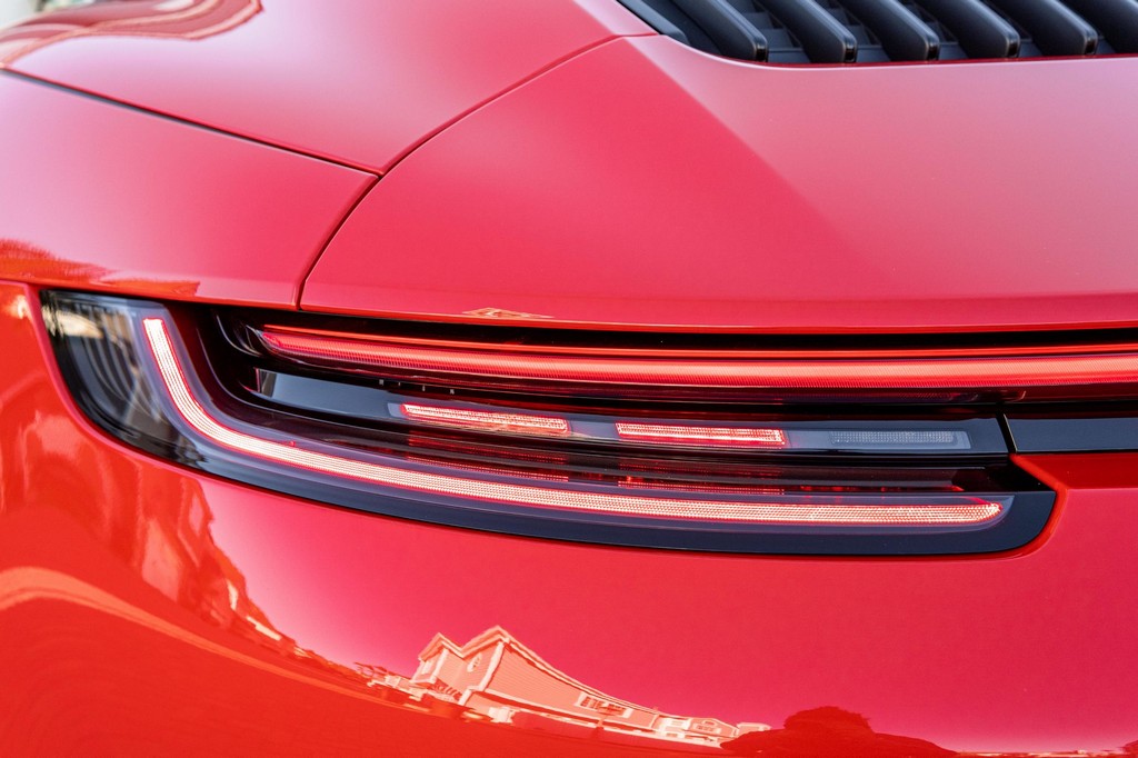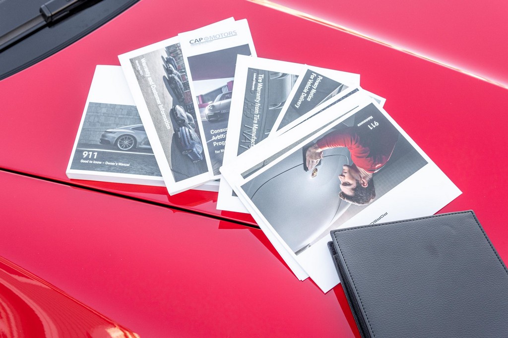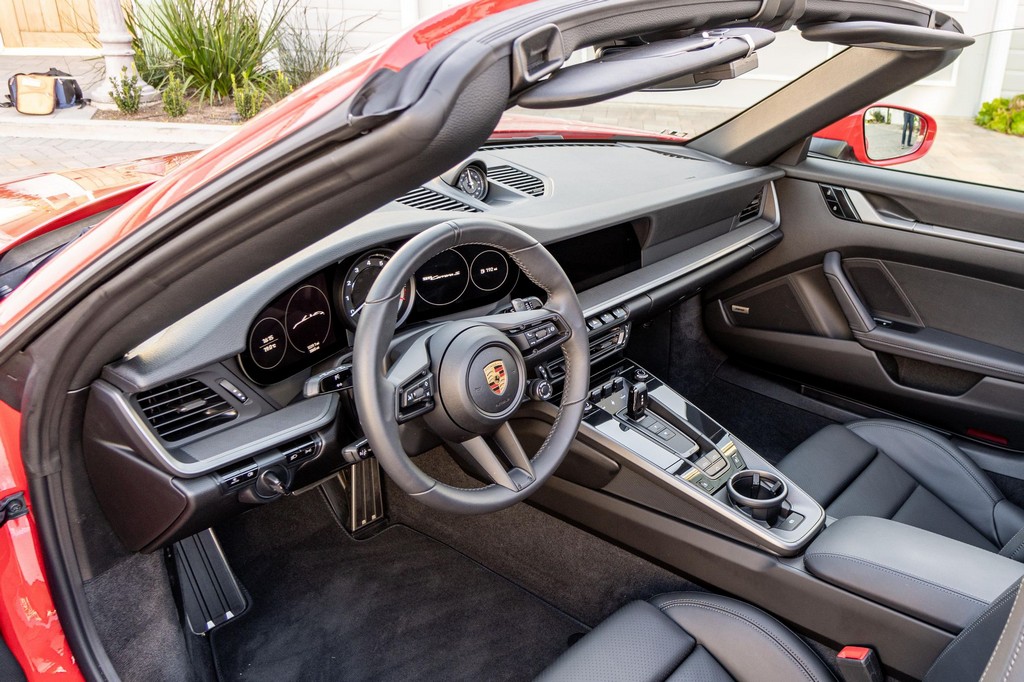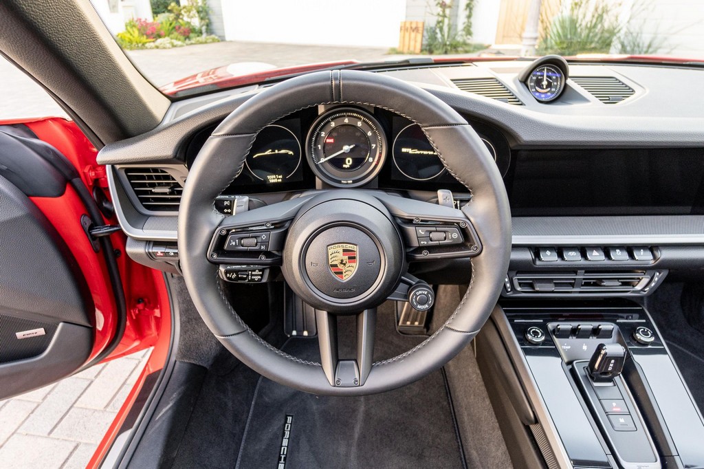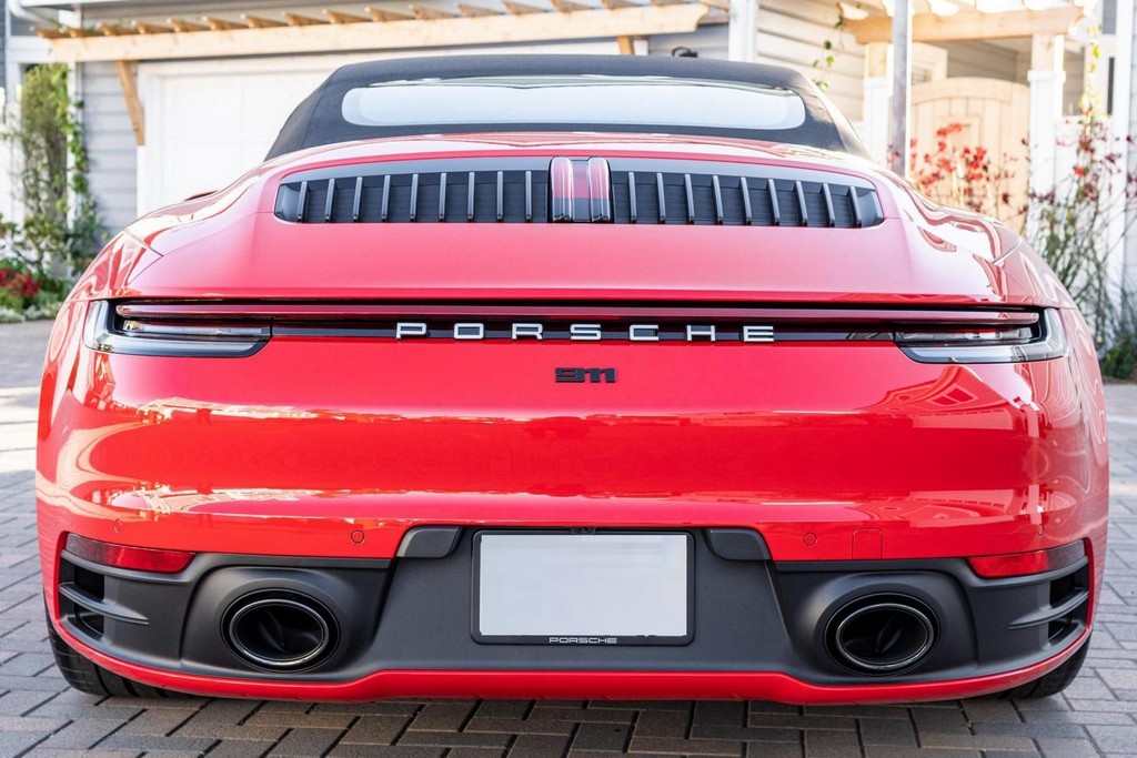 THIS… is a 2021 Porsche 911 Carrera S Cabriolet, finished in Guards Red with a black soft top, and a black interior. The attached Carfax history report lists no accidents or mileage inconsistencies. It also shows that this is a one-owner car that’s been California-owned since new. A partial list of notable equipment includes the Sport Package which features the Sport Chrono Package, a sport exhaust system, and Porsche Active Suspension Management (PASM) sport suspension. Other equipment includes 21-inch alloy wheels, 14-way power seats with memory package, a Bose sound system, Lane Change Assist (LCA), Adaptive Cruise Control (ACC), and more detailed below. Porsche released the “992” generation of the 911 for 2020. Slightly longer and wider than its predecessor, it received evolutionary design updates and much more significant changes under the body, including revised engines and an 8-speed automatic transmission. Power for this 911 comes from a twin-turbocharged 3.0-liter flat-6 engine, rated at 443 horsepower and 390 lb-ft of torque. Output is sent to the rear wheels via an 8-speed Porsche Doppelkupplung (PDK) transmission linked to a pair of shift paddles.