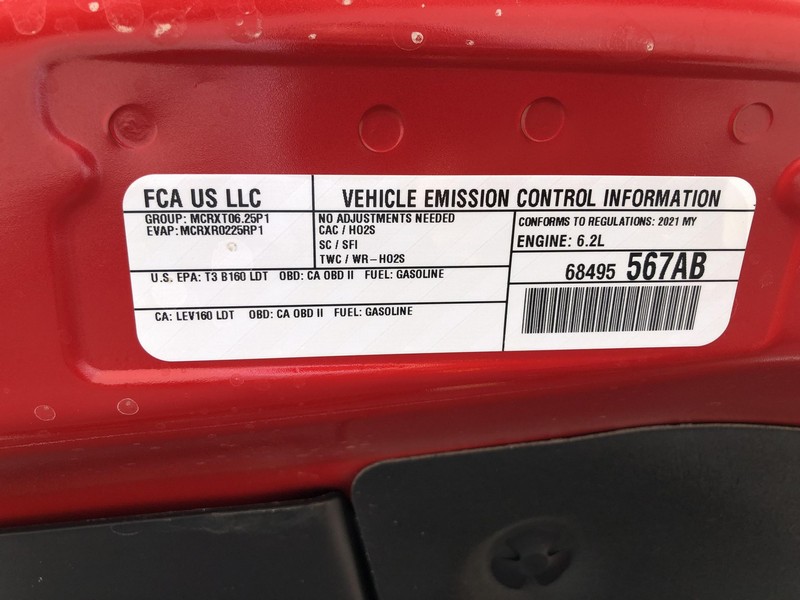 The attached Carfax vehicle history report shows no accidents in this Ram’s past. According to the window sticker provided in the gallery, factory equipment includes the Technology, Advanced Safety, and TRX Level 2 Equipment groups, the TRX Carbon-Fiber Package, 18-inch wheels, high-performance brakes, adaptive damping, a RamBar, rock rails, a dual-pane panoramic sunroof, leather upholstery, a Uconnect 12-inch infotainment system, and a Harman Kardon 19-speaker audio system. The seller reports no modifications. Power comes from a supercharged 6.2-liter “Hellcat” Hemi V8, rated at 702 horsepower and 650 lb-ft of torque. Output is sent to all four wheels via an 8-speed automatic transmission.