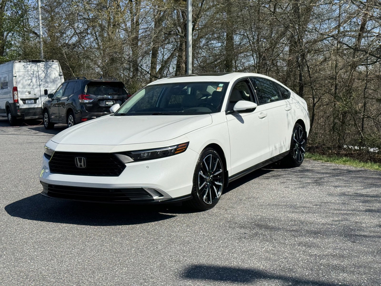 Adaptive Cruise Control: Adaptive Cruise Control (ACC) with Low-Speed Follow, Electronic Stability Control, Heads-Up Display, Heated & Ventilated Front Bucket Seats, Heated rear seats, Lane departure: Lane Keeping Assist System (LKAS) active, Leather-Trimmed Seat Trim, Navigation system: Google Built-In, Power driver seat, Power moonroof, Power passenger seat, Power windows, Telescoping steering wheel, Tilt steering wheel, Traction control, Wheels: 19 x 8.5J Berlina Black, 12 Speakers, 4-Wheel Disc Brakes, ABS brakes, Adaptive suspension, Air Conditioning, Alloy wheels, Alloy wheels, AM/FM radio, Apple CarPlay/Android Auto, Auto High-beam Headlights, Auto-dimming Rear-View mirror, Automatic temperature control, Bose Premium Sound System, Brake assist, Bumpers: body-color, Compass, Delay-off headlights, Driver door bin, Driver vanity mirror, Dual front impact airbags, Dual front side impact airbags, Emergency communication system: HondaLink, Exterior Parking Camera Rear, Four wheel independent suspension, Front anti-roll bar, Front Bucket Seats, Front Center Armrest, Front dual zone A/C, Front reading lights, Fully automatic headlights, Garage door transmitter: HomeLink, Heated door mirrors, Heated front seats, Illuminated entry, Knee airbag, Leather Shift Knob, Leather steering wheel, Low tire pressure warning, Memory seat, Occupant sensing airbag, Outside temperature display, Overhead airbag, Overhead console, Panic alarm, Passenger door bin, Passenger vanity mirror, Power door mirrors, Power steering, Radio data system, Rain sensing wipers, Rear anti-roll bar, Rear reading lights, Rear seat center armrest, Rear side impact airbag, Rear window defroster, Remote keyless entry, Security system, Speed control, Speed-Sensitive Wipers, Split folding rear seat, Steering wheel mounted audio controls, Trip computer, Turn signal indicator mirrors, Variably intermittent wipers, and Ventilated front seats. 2023 Honda Accord Hybrid Touring Adaptive Cruise Control: Adaptive Cruise Control (ACC) with Low-Speed Follow, Electronic Stability Control, Heads-Up Display, Heated & Ventilated Front Bucket Seats, Heated rear seats, Lane departure: Lane Keeping Assist System (LKAS) active, Leather-Trimmed Seat Trim, Navigation system: Google Built-In, Power driver seat, Power moonroof, Power passenger seat, Power windows, Telescoping steering wheel