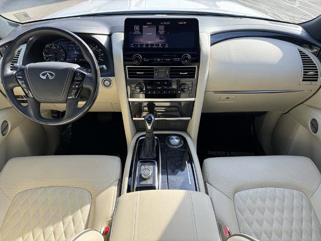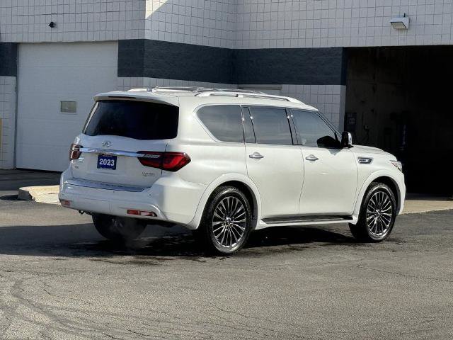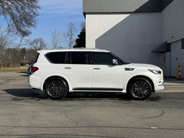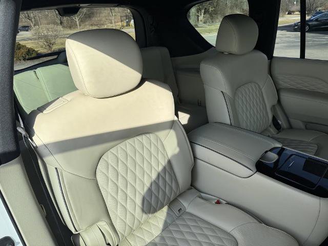 WOW. MUST SEE 7K MILE 1 OWNER 2023 INFINITI QX80 4WD SENSORY. FRESH OIL CHANGE AND IT NEEDS ABSOLUTELY NOTHING. THIS QX80 WAS AN INFINITI EXECUTIVE DRIVEN VEHICLE AND IS STILL LIKE NEW BUT WILL SAVE YOU THOUSANDS OFF THE NEW PRICE. THE MAJESTIC WHITE WITH WHEAT INTERIOR COLOR COMBO REALLY MAKES IT STAND OUT AND IT MUST BE SEEN AND DRIVEN TO APPRECIATE JUST HOW NICE IT IS. DO NOT MISS OUT ON THIS OPPORTUNITY. CHECK IT OUT TODAY. YOU WILL NOT BE DISAPPOINTED.