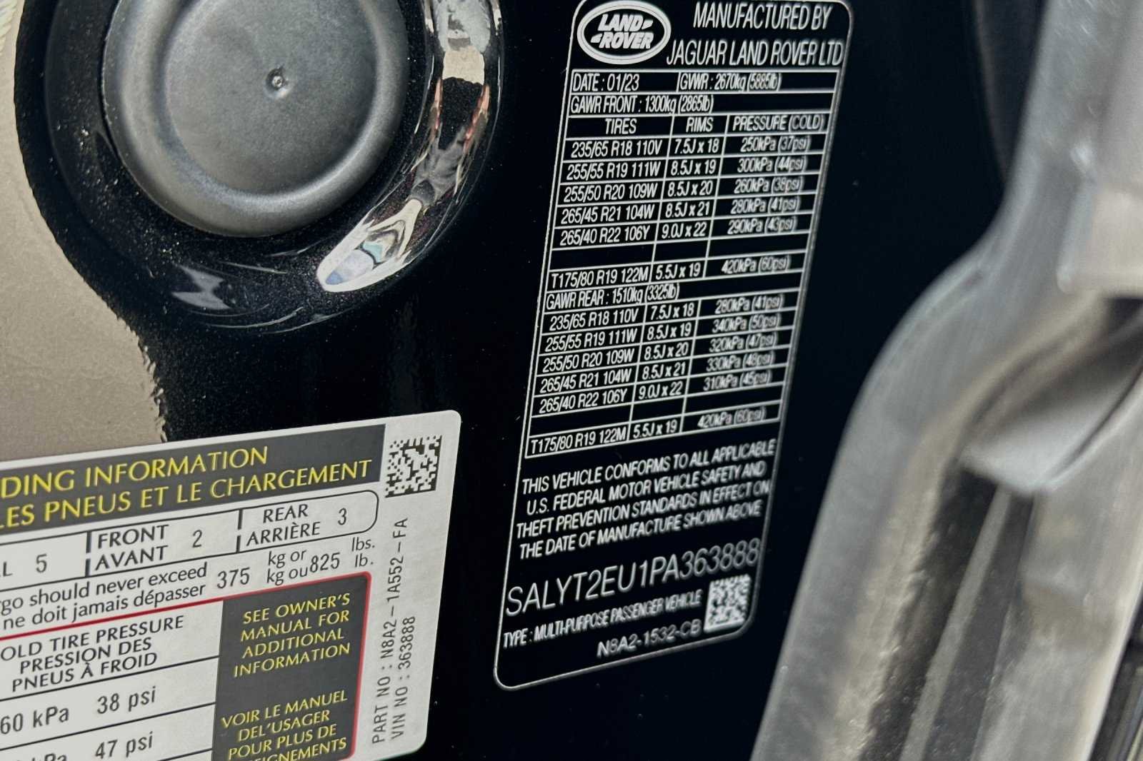 Land Rover , Panoramic Moonroof, Previous Loaner, 20 Wheels, Adaptive Cruise Control w/Steering Assist, Basic Rear Seat Convenience Pack, Cargo Carrier, Cargo Net, Exterior Parking Camera Rear, Front Bucket Seats, Front dual zone A/C, Front Fog Lights, Gloss Black Exterior Mirror Caps, Gloss Black Front Grille & Grille Surround, Gloss Black Roof Rails, Heated front seats, Loadspace Mat, Memory seat, Navigation system: Pivi Pro, Perforated Grained Leather & Suedecloth Seat Trim, Power Liftgate, Premium Interior Protection & Storage Pack, Premium Rear Seat Convenience Pack, Radio: Meridian Sound System (400W), R-Dynamic Black Exterior Styling Pack, Rubber Mats, Steering wheel mounted audio controls, Sunshade, Wheels: 20 7 Split-Spoke Gloss Black.
